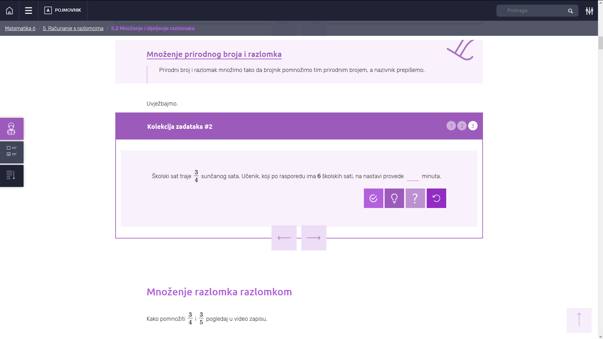 Postoje i neke složenije interaktivne vježbe i zadatke. Sadrže različite interaktivne igre, slagalice i slično. Iznad takvih vježbi nalazi se gumb kojim učenik može povećati takvu vježbu na pun ekran kako bi korištenje vježbe bilo što lakše, preglednije i ugodnije.