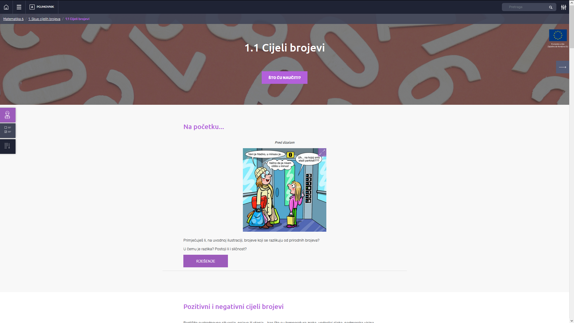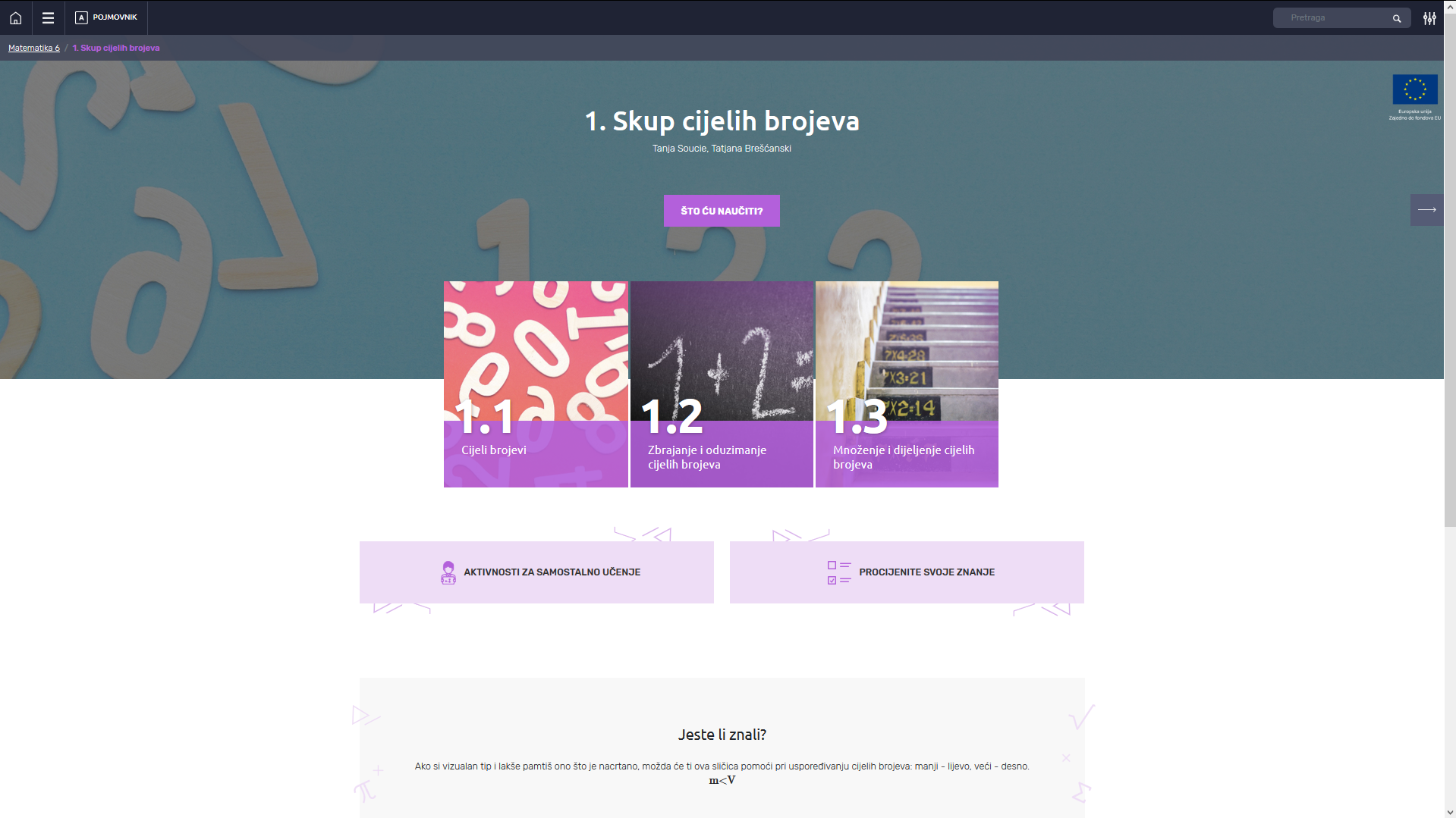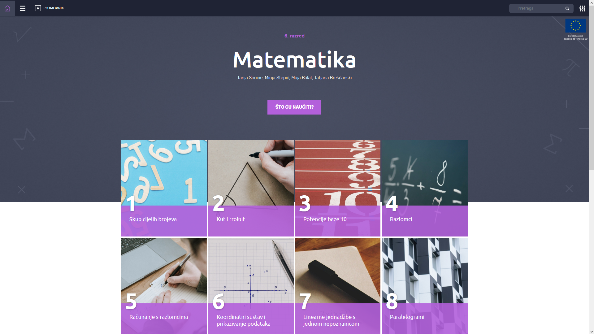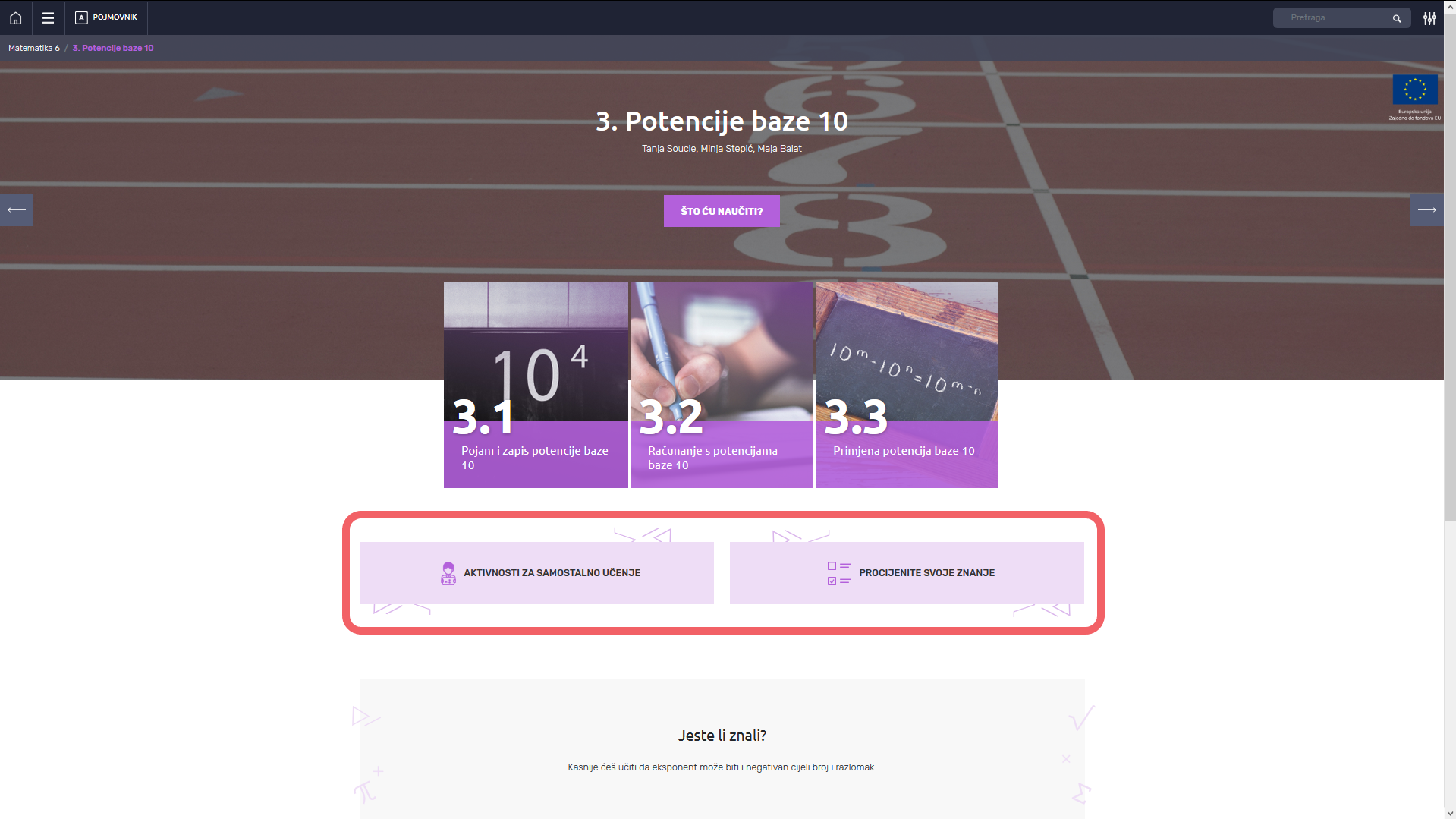 Na vrhu svake stranice u strukturi sadržaja, bez obzira na to radi li se o cijelom digitalnom sadržaju za pojedini razred, modulu ili jedinici, nalazi se gumb „Što ću naučiti“ gdje se nalazi popis obrazovnih ishoda za taj digitalni obrazovni sadržaj, modul ili jedinicu.