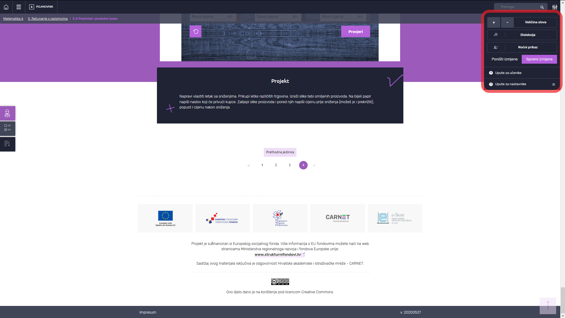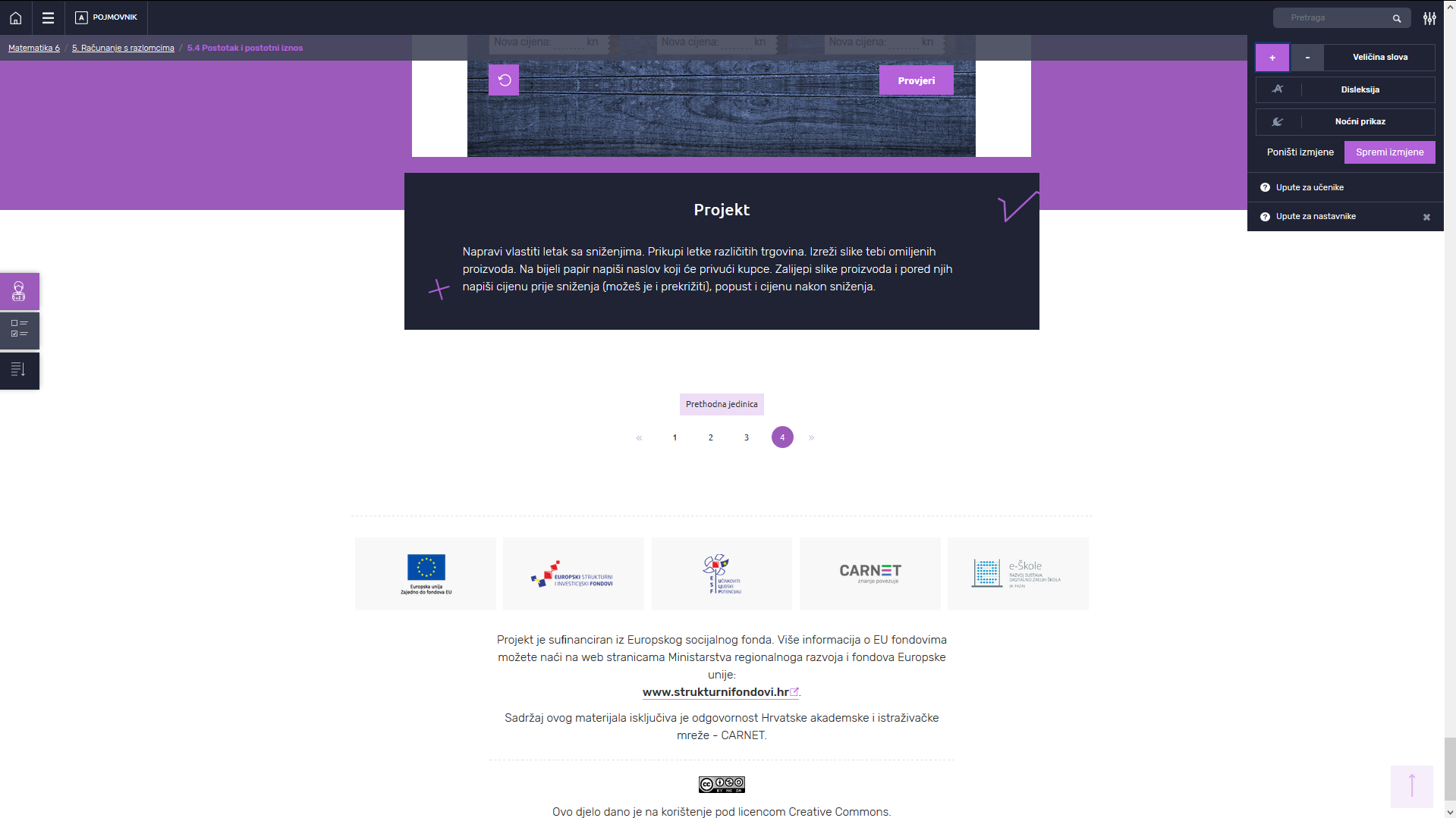 Izbornik za pristupačnost omogućuje promjenu veličine slova na stranicama sadržaja, uključivanje i isključivanje fonta za disleksiju te uključivanje i isključivanje noćnog prikaza.
