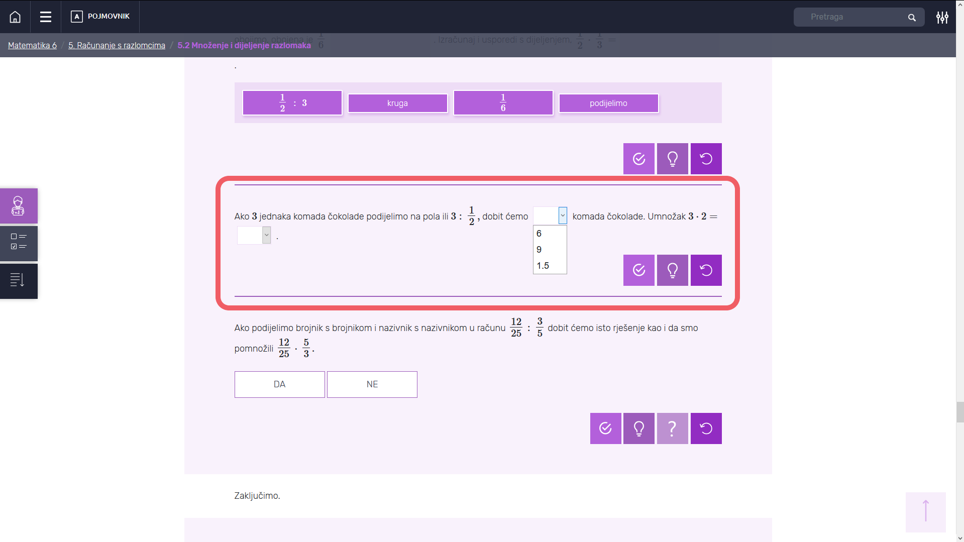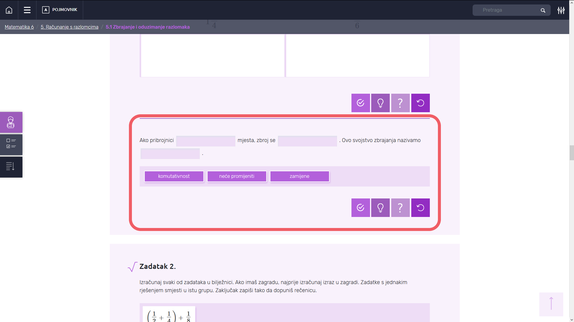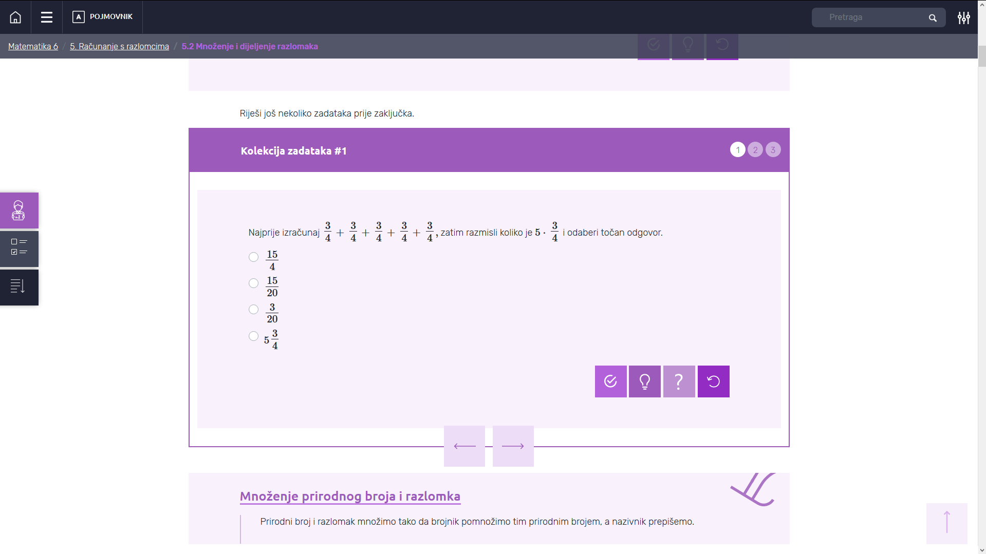 Postoje i neke složenije interaktivne vježbe i zadatke. Sadrže različite interaktivne igre, slagalice i slično. Iznad takvih vježbi nalazi se gumb kojim učenik može povećati takvu vježbu na pun ekran kako bi korištenje vježbe bilo što lakše, preglednije i ugodnije.