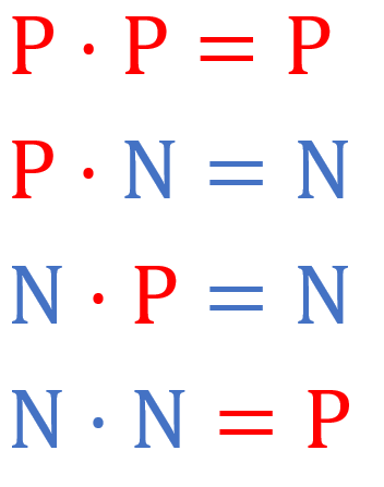 Ova se "tablica prijateljstva", uz pretpostavku da je oznaka za negativni broj (neprijatelj), a oznaka za pozitivni broj (prijatelj), može zapamtiti na sljedeći način.